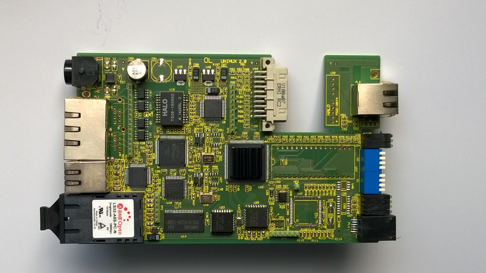 Fernsteuerbares (per Telnet oder Web based) Batterie gestütztes Messgerät mit integriertem Giga Ethernet Switch, 2 Prozessoren, 2 Mac-Layern. Zwei GigaEthernet-Ports (RJ45) sowie eine spezielle Opto-Schnittstelle.